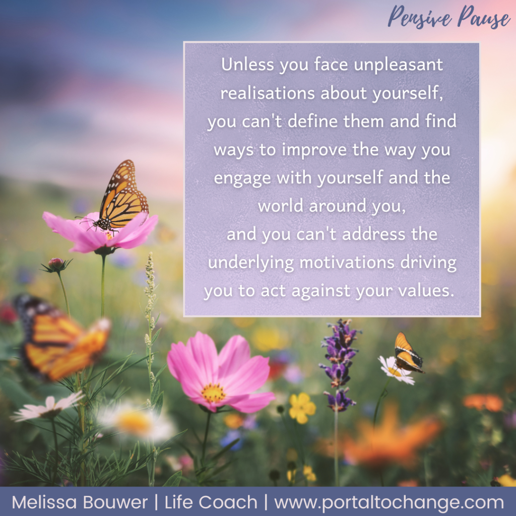 I recently realised something unpleasant about myself, something that I could so easily have minimised until the dissonance in my mind faded, or explained away by rationalising it with a thousand excuses. But unless you face unpleasant realisations about yourself, you can’t define them and find ways to improve the way you engage with yourself and the world around you, and you can’t address the underlying motivations driving you to act against your values.